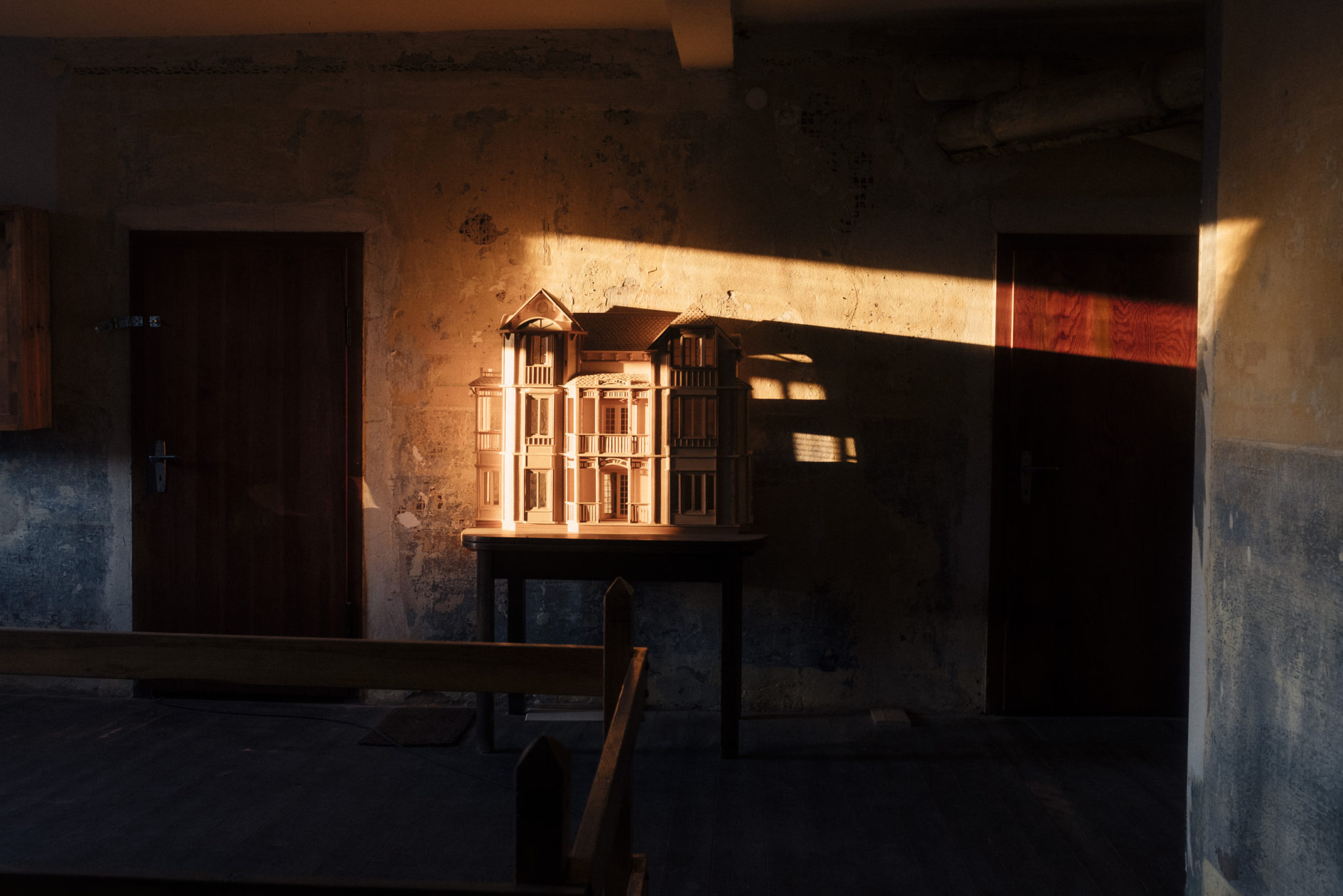 Vom frühen Vor- bis Nachmittag steht die Sonne im Hühnerstall, der seinerseits mitten im Obstgarten seinen Platz gefunden hat. Mittlerweile findet ihr dort auch eine schöne Sitzbank. Im nächsten Jahr entsteht daraus ein kleines Selbstversorger-Einsiedler-Atelier mit Ofen und einer Schlafmöglichkeit. Im alten Kuhstall bereitet eine Reflektion für einen ganz kurzen Zeitraum ein Licht, das Seinesgleichen sucht. Wir sagen euch gern bescheid, wenn es soweit ist!